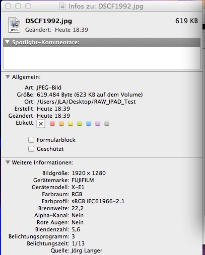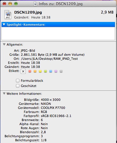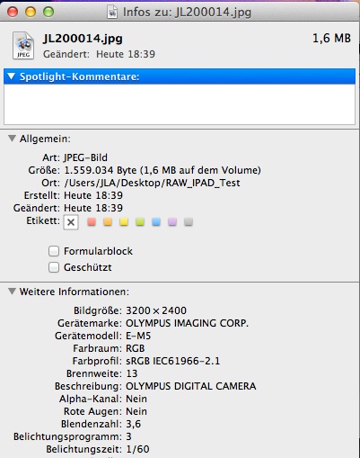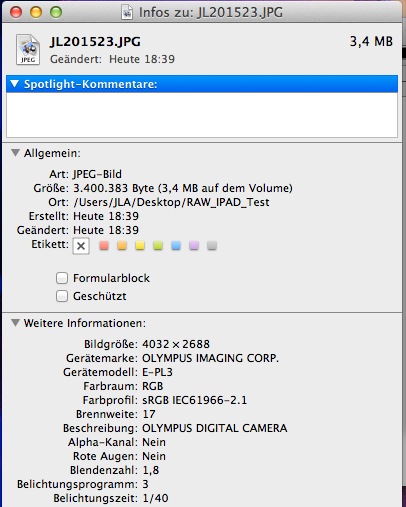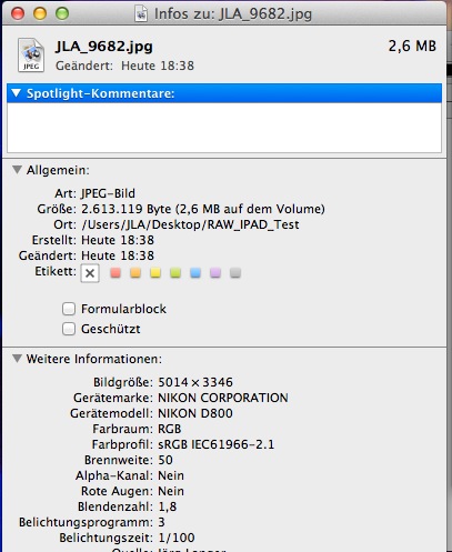 - Raws liegen in voller Form unverändert auf dem iPad und können 1 zu 1 auf den Rechner übertragen werden mittels USB Kabel. Ich nutze dafür das Program „Digitale Bilder“ auf dem Mac.
