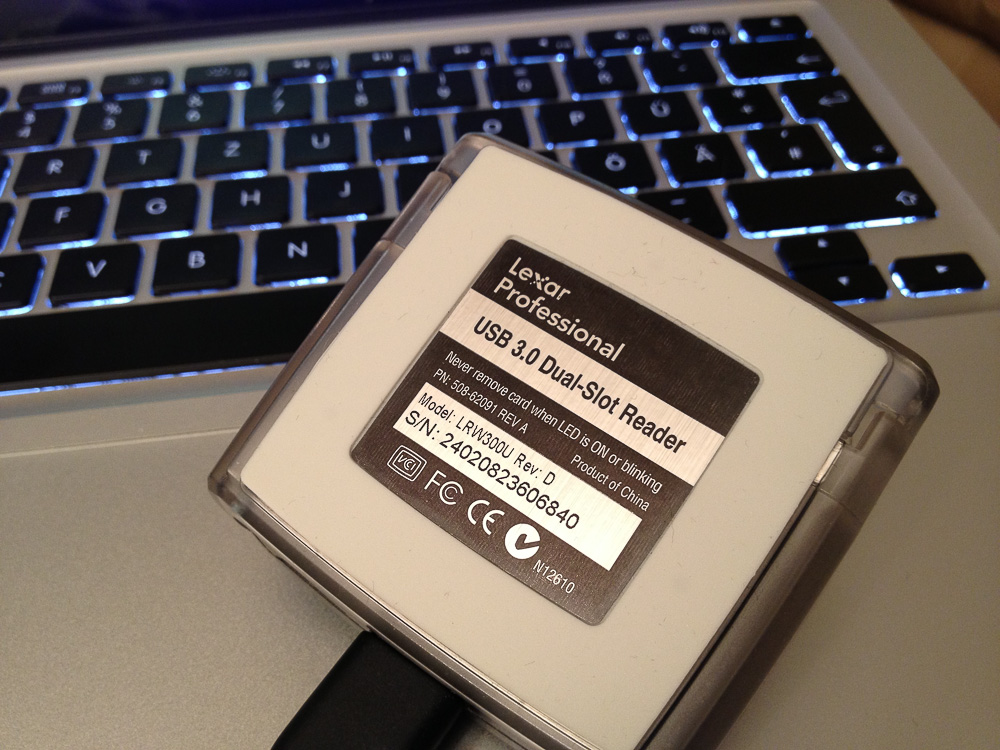 Also bei der Fototasche habe ich (und meine Frau auch….) es aufgegeben. Beim Stativ bin ich im Moment nicht auf der Suche weil gut bestückt, aber beim Card Reader war ich schon lange auf der Suche. Schon vor Monaten hatte mir ein sehr sehr guter Freund den Dual Reader USB3 von Lexar empfohlen, aber irgendwie dachte ich ja mein eingebauter Reader in der Windows Workstation (auch ein USB3) sei schnell genug und für den mobilen Mac tut es der USB2 Reader. Irgendwann dann vor ein paar Wochen habe ich mir doch den empfohlenen Reader bestellt und muss sagen, das hätte ich mal gleich machen sollen, als es mir der liebe Fotofreund empfahl.