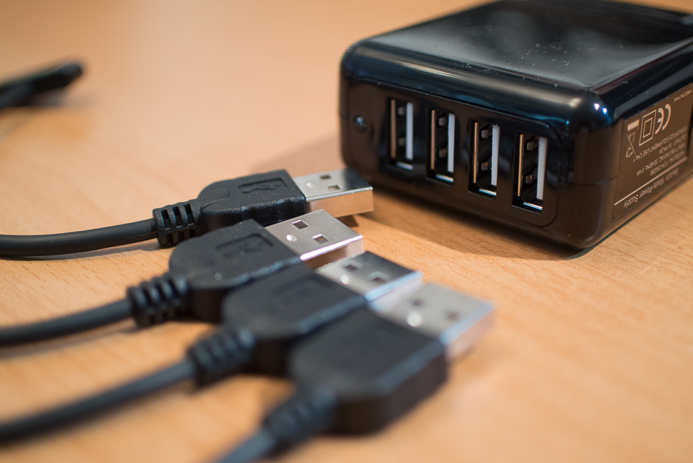 Gefunden habe ich dann dieses Steckernetzteil mit vier USB Ports.