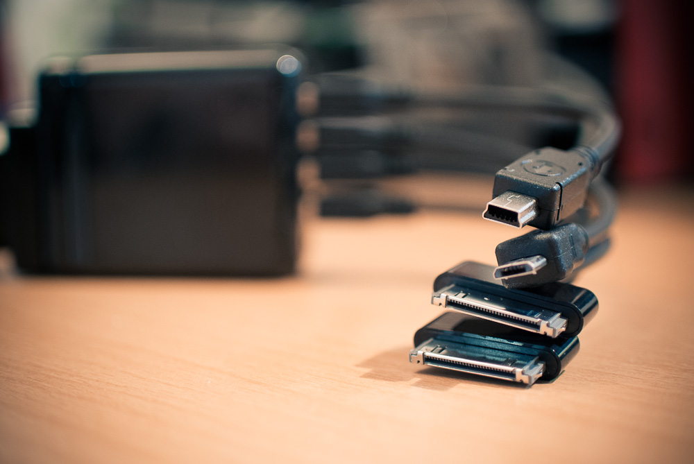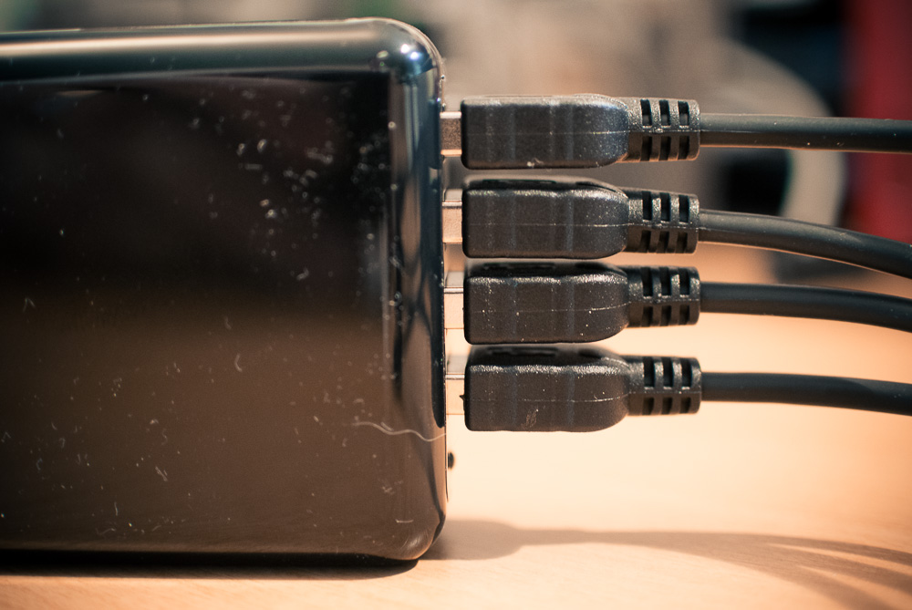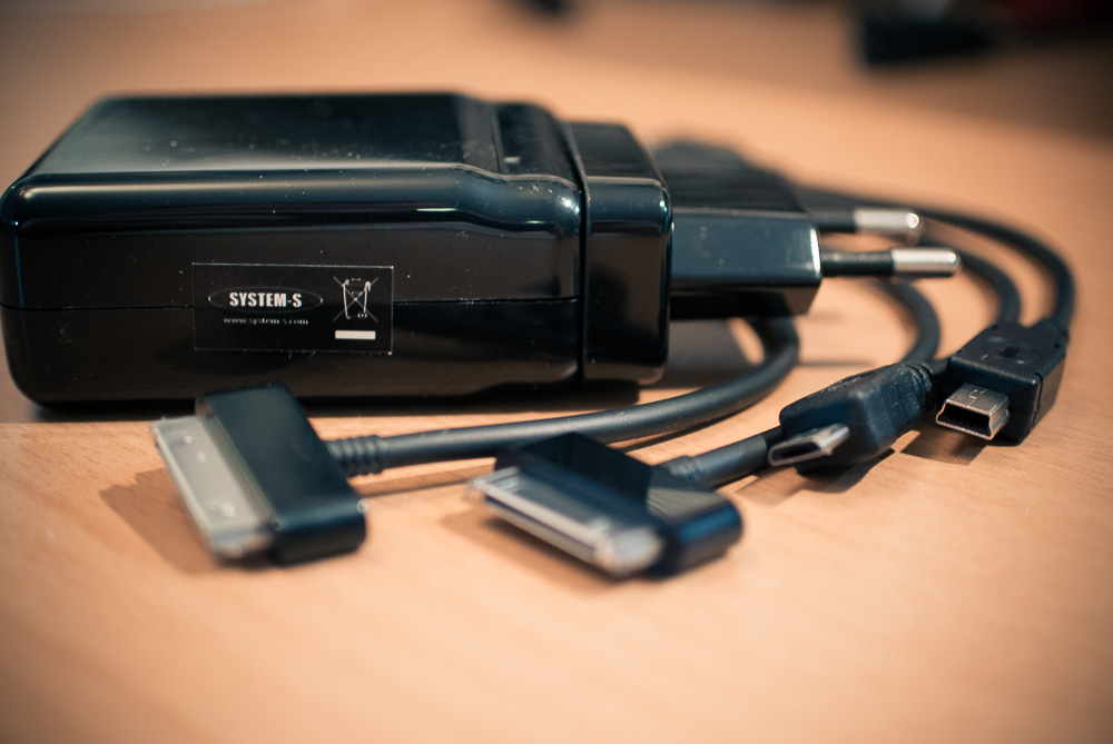 Vier USB Ports, austauschbare Anschlüsse für „alle Herren Länder“, relativ klein, absolut bezahlbar (siehe Links unten am Blogposting-Ende) und ich habe sogar kurze Kabel gefunden. Also ein schönes Set für die Firmentasche, für die Reisetasche oder auch für den heimischen Schreibtisch.