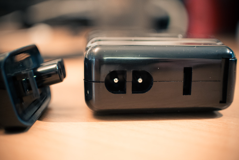Einziger Hardware-Bug ist der Steckanschluss, dieser hat einen Steg, so dass normale Euro-Stecker (Rasiererkabel) nicht passen. Da hab ich mir flux mit dem Taschenmesser in einen Standard-Eurostecker den Steg eingebaut (2min Aufwand) und siehe da auf Reisen hab ich jetzt ein Rasiererkabel, was mir das Netzteil auch schnell mal zum Fussboden oder Tisch verlängert.
